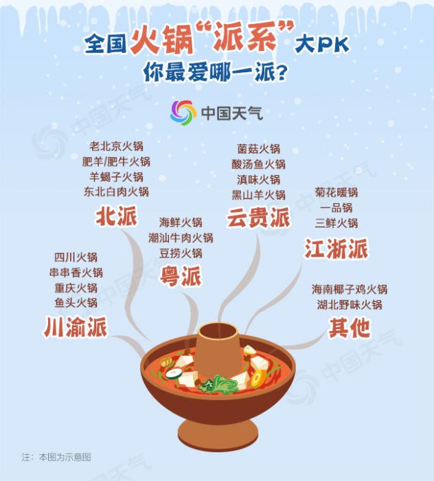 中国天气网讯 “没有什么事是一顿火锅解决不了的,如果有,那就两顿!”,在吃货眼里,世界万物皆可涮…昨晚(12日)开始,10月以来最强冷空气“倾巢南下”,多地气温遭“腰斩”。中国天气网推出首个全国吃火锅抗寒地图,告诉你哪里将冷到瑟瑟发抖,急需火锅“续命”,并盘点全国六大派系火锅,看看你最爱哪一派?网友:“小孩子才做选择,我都喜欢”。