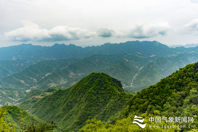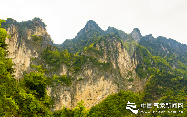 夏日雨后的秦岭塔云山、天竺山青翠欲滴,伴随着山峦叠嶂、奇峰林立、徒崖绝壁,构成了大自然绝美的画卷。图为2019年5月5日摄影。张宏利报道