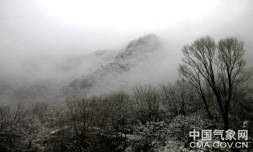 春日秦岭, 秦岭山区海拔1300米以上地区出现了积雪,最大积雪深度超过20厘米。图为2017年3月12日摄。贾毅萍 邓小丽 王丽报道