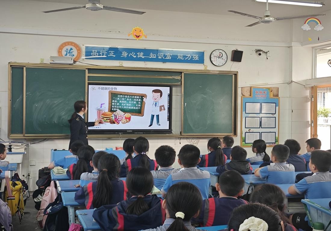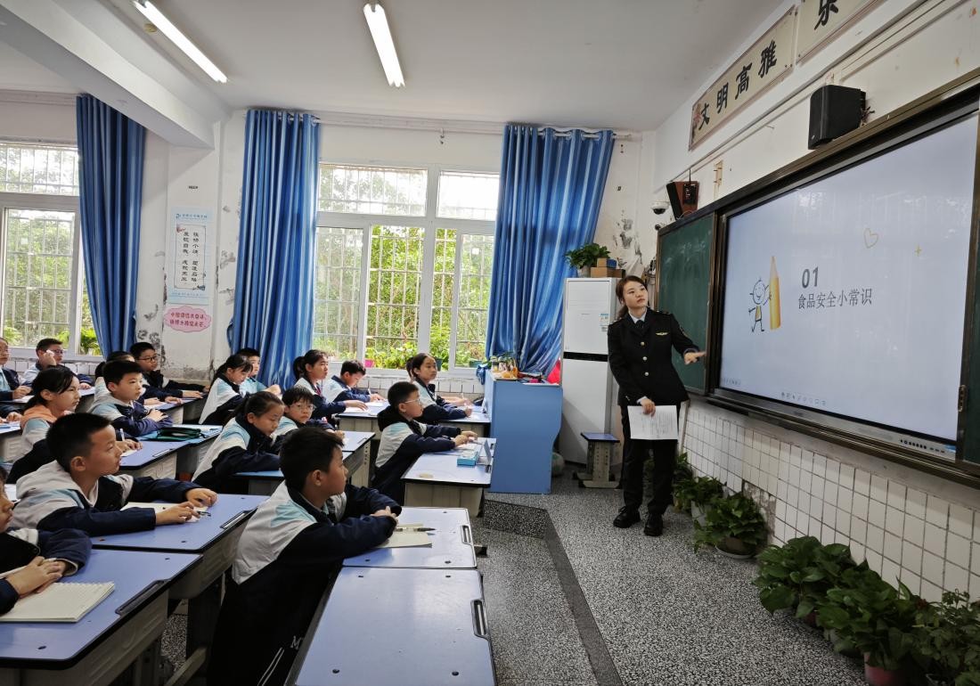 本次活动以小学、初中师生为宣讲重点,仪陇县城内四所学校3-8年级2600余师生参与。活动中,市场监管工作人员化身“讲课老师”精心备课,在操场、教室、学术厅等场地开展室内室外宣讲,通过生动有趣、内容适宜的案例视频和深入浅出、图文并茂的课件内容,向师生们介绍了市场监管和未成年人保护法律法规的基本内容和要求,重点讲解了食品药品安全、产品质量安全、消费维权等方面的知识,同时,通过实物对比和数据分析,现场演示了如何识别假冒伪劣产品、挑选购买合格商品,如何避免消费陷阱、维护自身合法权益等实用技巧。在宣讲过程中,“讲课老师”还设置了互动环节,鼓励师生们积极参与提问和讨论,并认真聆听、耐心解答,大大增强了宣讲活动的互动性和趣味性,现场气氛热烈。