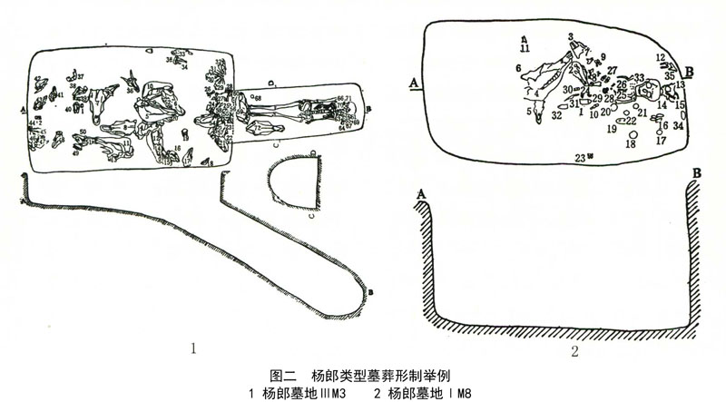 除甘肃庆阳地区发现的一座墓葬外,杨郎类型遗存集中分布在宁夏固原地区,遗存延续的时代较长,从春秋晚期一直延续到战国晚期,其中绝大部分墓葬的年代主要集中在春秋晚期至战国早期,只有杨郎墓群中有一小部分墓葬的年代进入了战国晚期。