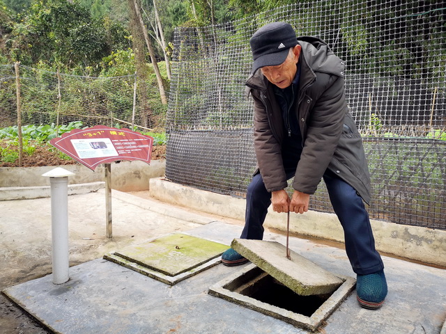 69岁村民许永双家的旁边就是“三格化粪池+生活污水收集池”,做了加盖、除臭、增设排气管等简单改造,淘米、洗菜等生活污水全部接入旧粪坑,沼液、沼渣用作肥料,旧粪坑水用于菜园灌溉。