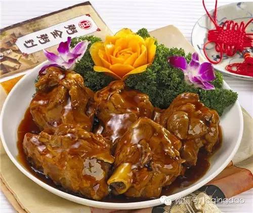 大棒骨经过大锅炖煮,肉烂香糯。上桌前浇汁调味,更显老青岛风味。