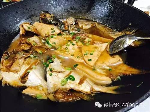 又一道特青岛的家常菜。市场上买回来的小杂鱼,经过厨师的巧妙烹饪,汤鲜肉嫩。尤其是带有饹馇的小饼子蘸上鱼汤吃,满足啊。