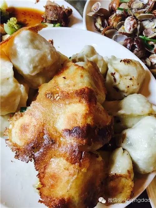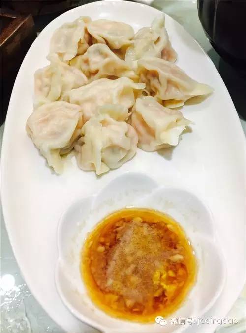 三鲜水饺,绝对是青岛港上值得一吃的。薄皮,手工包制,馅料是韭菜、肉和虾仁,每只咬开之后都是汤汁浓郁,溢满口腔。