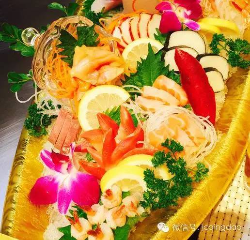 名宴新鲜养眼的刺身拼盘。日本的刺身料理,通常出现在套餐中和桌菜中,同时也可以做为下酒菜、配菜或是单点的特色菜。因为原料是生的,外形很好看,这个摆盘本身就是一道漂亮的风景线。