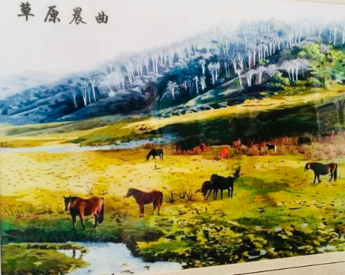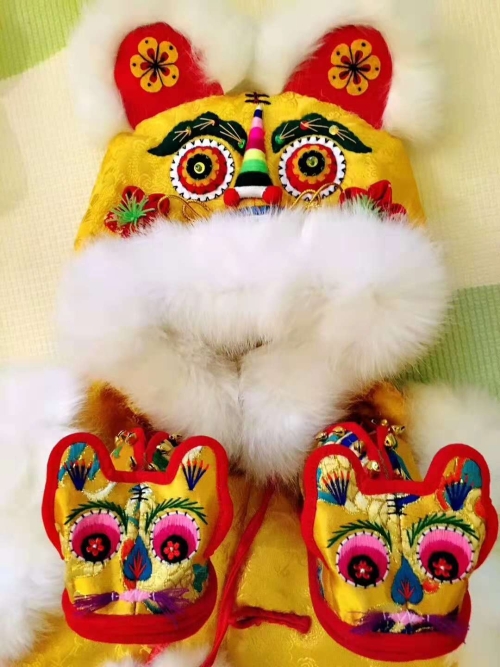 绣品“龙风呈祥”、“麒麟送子”、“寿星图”等表示祝愿吉祥;“五毒肚”、“五毒耳枕”、“五毒凉帽”等以示驱除斜恶;“松鹤延年”、“五福捧寿”等表示吉祥如意,益寿延年;“喜鹊闹梅”、“莲生贵子”、“风喜牡丹”、“松鹤鹿雁”、“多子石榴”等以致新婚男女团结合睦,幸福美满;“王祥卧冰”、“李存孝打虎救父”、“二十四孝图”等体现了中华民族尊老美德。