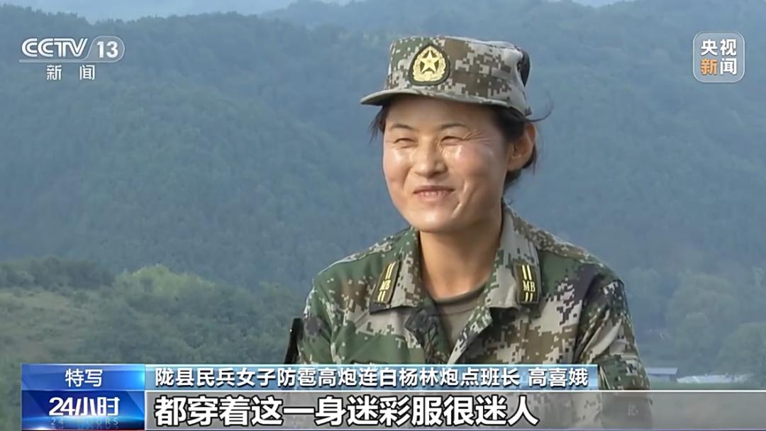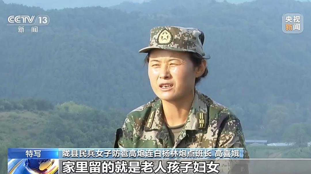 陇县民兵女子防雹高炮连白杨林炮点班长 高喜娥:第一次进来的时间是2001年,我刚20岁,进来干了七八年退出去了,第二次是2016年进来一直到现在,当时我进来的时候看着人家穿着这一身迷彩服很迷人,刚进来时训练太苦我都哭了,像队列训练我啥都不懂。