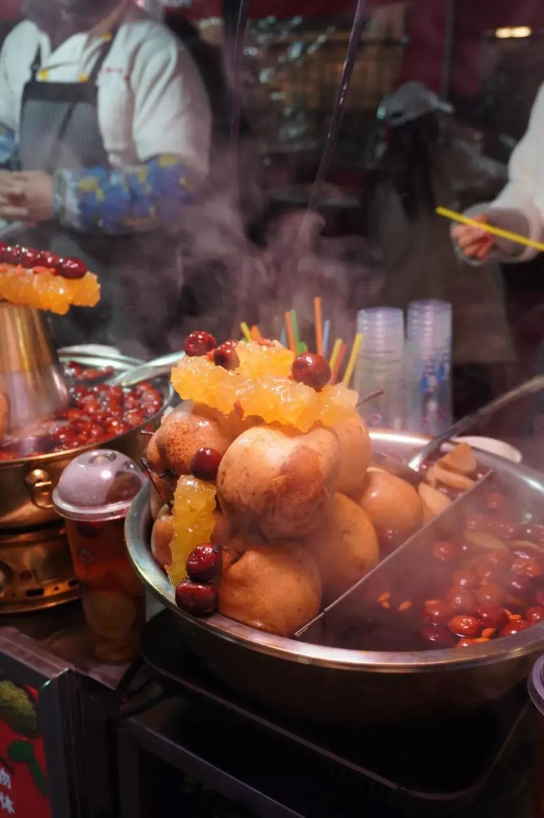 在正宁路夜市数老马家的最火,冬日里小摊处冒着的热气和空气里漂浮着的香味粒子,吸引着一群群嗅到甜味的觅食者们。
