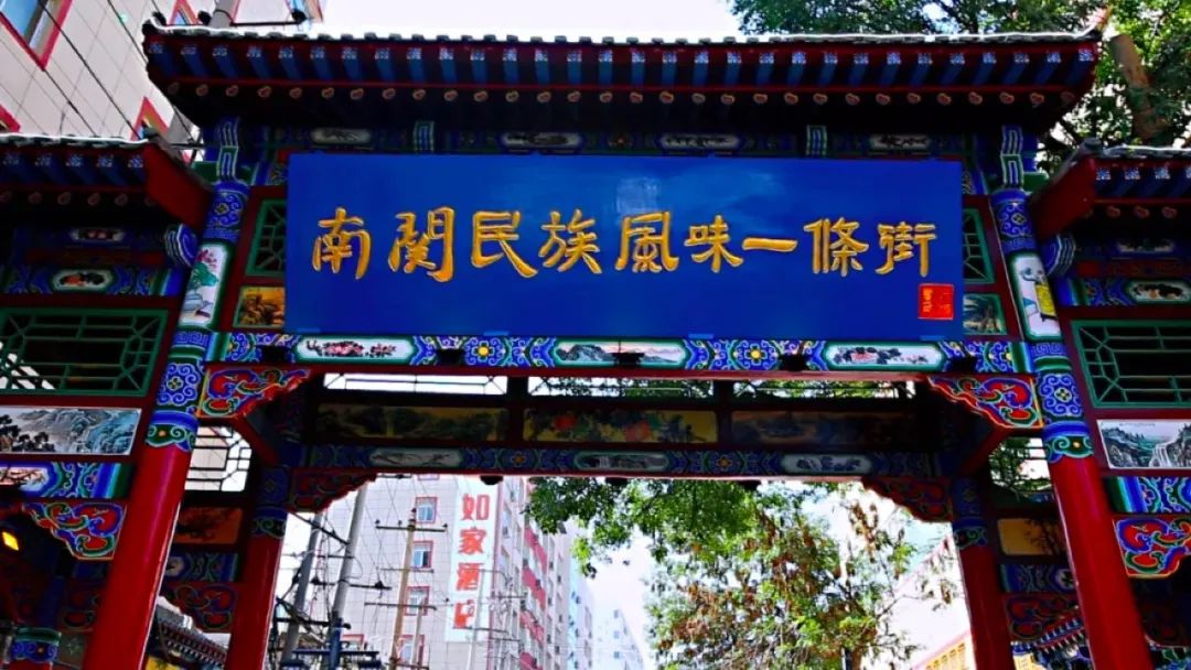 南关夜市的全称是南关民族风俗一条街,清一色的明清仿古建筑,赋予了更多的文化内涵。兰州古八景烧制与景德镇青花瓷盘被安装在夜市南入口一栋楼体上,色如宝石蓝般鲜艳,远观气势庞大。“一面情”兰州牛肉面雕塑、兰州战役剪影铁艺画框等众多彰显兰州文化的景观,让食客们在品尝美食的同时,仿若徜徉在繁华的老兰州街道内。
