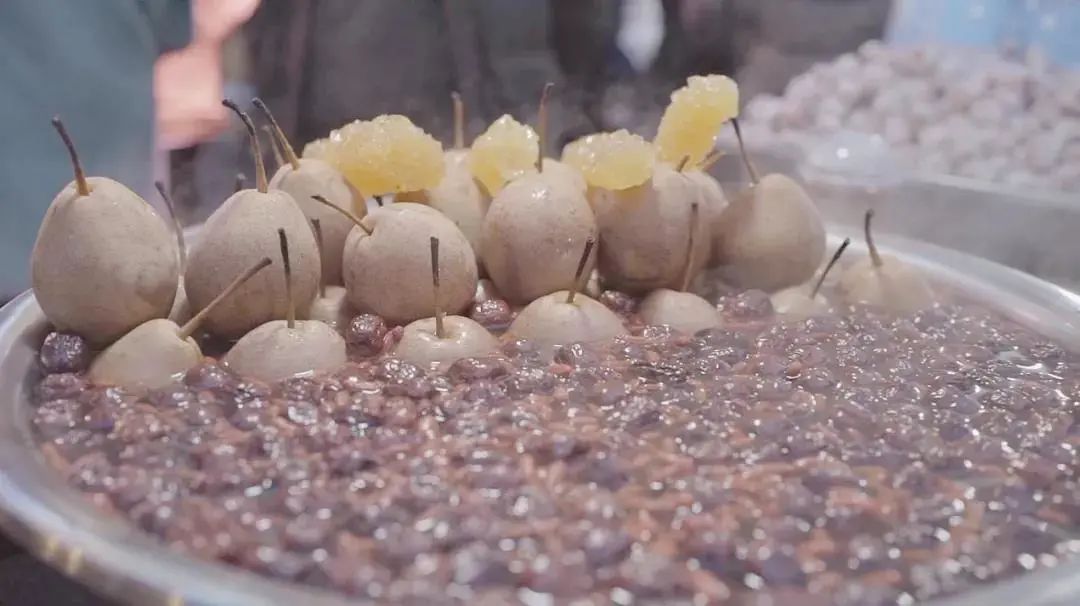 热气腾腾的梨子散发着淡淡的药味和清香,同时有祛痰、滋阴、润肺、止咳之功效。吃上一个驱散寒气,止渴生津,简直是冬日最佳。