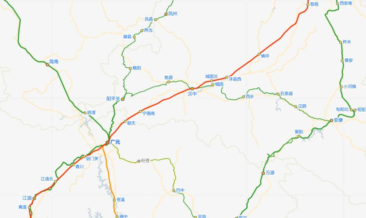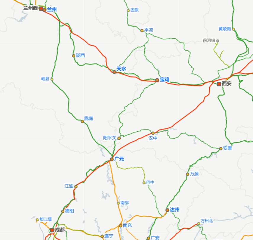 即使抛开高铁,四川北部经陕西前往华中、华北、东北也并非只有北宝成一种选择。