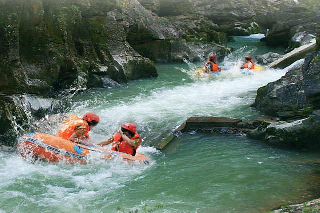 辽宁红河谷漂流景区规划面积60公顷,漂流全程12.8公里,漂流时间2小时,以其原始性、刺激性、参与性、大众性等几大独有特征,被誉为“中国北方第一漂”。红河峡谷漂流河段20至50米宽度不等;0.8米左右的水深,落差适中;40余处缓段、急段交替出现;沿途迎客壁、鸡冠岩、老艄、龙门跳、上山虎、双龙艄、神龟送客、双乳峰等天然景点让您领略出大自然的鬼斧神工;漂流途中时而悠闲自在、时而有惊无险,颇有“山重水复疑无路,柳暗花明又一村”的情趣。 【 详细>>】