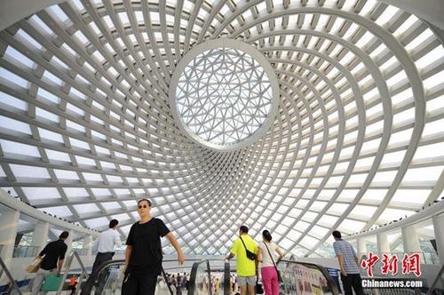 图为2015年9月20日上午,京津城际铁路首趟通往于家堡站的列车平稳抵达,标志着天津滨海新区商务核心区于家堡站正式投用。 中新社记者 佟郁 摄