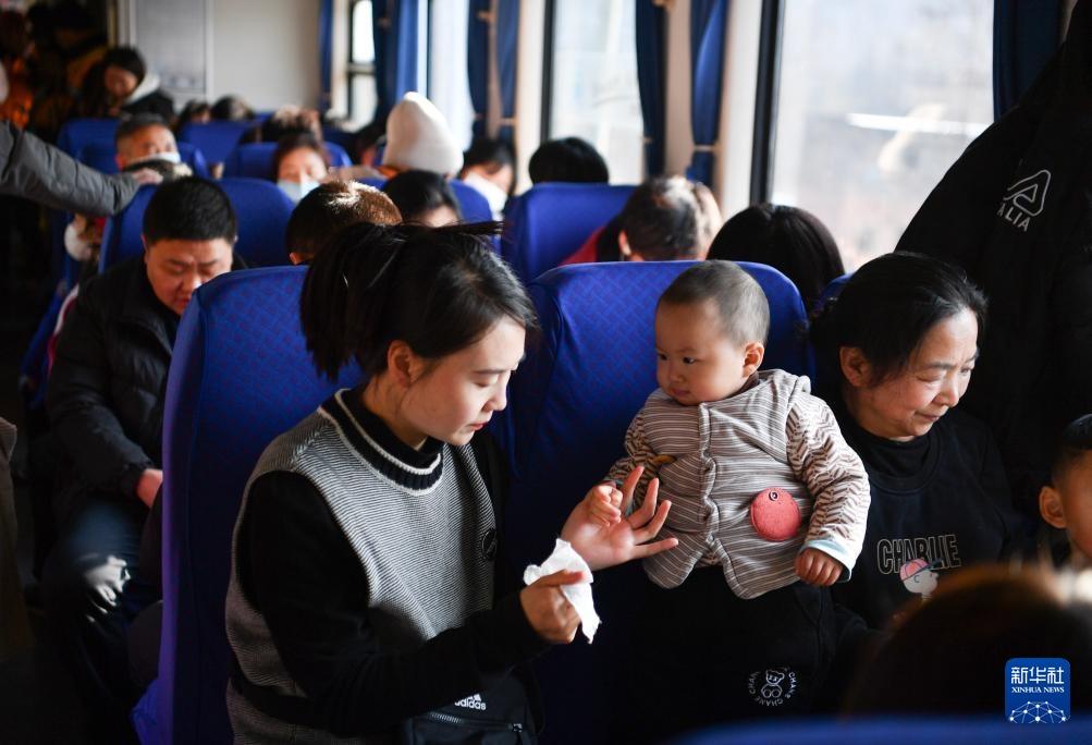 1月28日,旅客乘坐公益“慢火车”6063次列车出行。