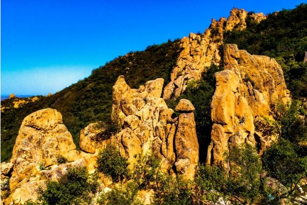 位于朝阳县长在营子乡,距市区58公里。景区内九沟十八岭无沟不秀、无岭不奇。榆林沟景区山峰连绵重叠,争奇竞秀,岩石造型妙趣天成,形象逼真,有张家界之神韵;庙沟景区古木参天,百步一洞,千步一瀑,山泉掩映于树木之中,飞瀑斜挂在山壁之上,颇具九寨沟的意境。奇峰、怪石、清泉、飞瀑、山洞、巨树构成了一幅幅天然水墨画卷。