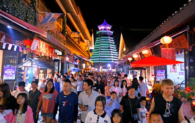 整个十字街,融汇了生活配套、非遗文创、餐饮美食、特色零售、酒店民宿等功能,还有各种演出、灯光秀等,实现了院院有文化、街街有看点、处处有精彩。