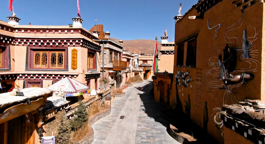 仁康古街位于四川省甘孜州理塘县,是318国道上游客由成都进入西藏的必经之地,街区总占地面积约13万平方米,总建筑面积约4万平方米,主街长1200米,宽2至7米,街区将康巴、红色、民俗、非遗等多种文化深度融合,打造了世界上最大的藏文化百科全书式街区。