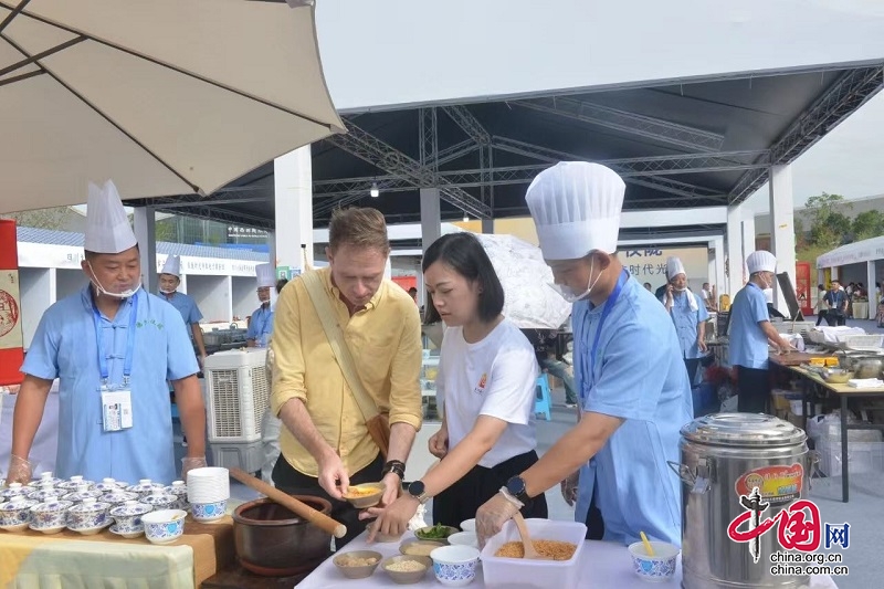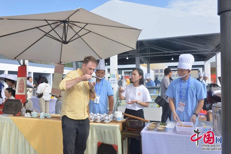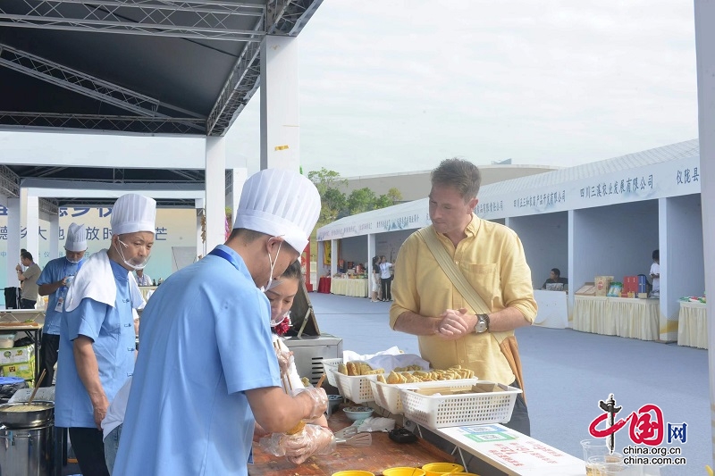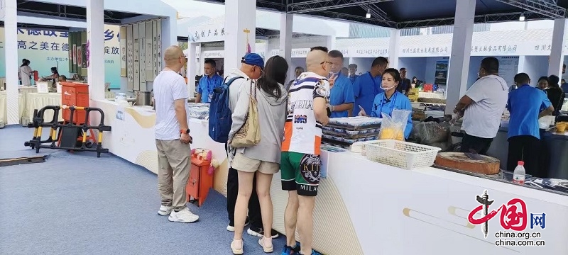 大山香米、客家牛肉、德乡嫂皮蛋、德懋菜籽油、银明黄酒、客家擂茶、王妈手撕烤兔……在仪陇展区现场,琳琅满目的特色农产品及旅游商品令人目不暇接,香气四溢的小吃令人垂涎欲滴。