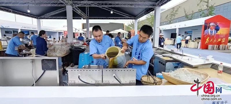 为此,第十九届西博会仪陇户外专场特意邀请了具有客家特色的小吃制作人驻场为游客和参展人员服务,包括细致研磨制作的客家豌豆凉粉和苕凉粉、软嫩爽滑的客家手打丸子、精心烤制酥脆可口的客家锅盔凉粉、清香宜人的客家擂茶等,既方便了过往游客和参展人员游览身乏之余大快朵颐,又为对外展示了仪陇独树一帜的客家风情。(杜灿)