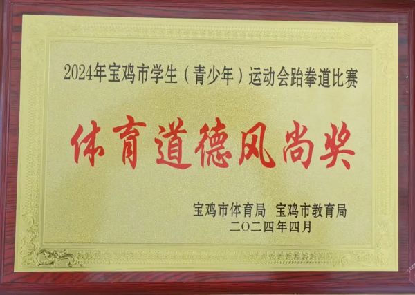 4月13日—14日,2024年宝鸡市学生(青少年)运动会跆拳道比赛在宝鸡市体育馆成功举办。陇县秦源小学首次组队代表陇县参加了本次比赛,经过两天的激烈角逐,取得了总积分103.5分、团体总分全市第五名的优异成绩,被宝鸡市体育局、宝鸡市教育局授予“体育道德风尚奖”。