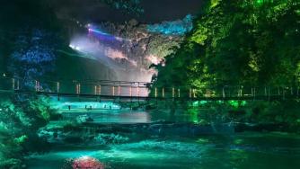 夜幕低垂,黄果树瀑布焕发新颜,作为智慧旅游试点,其夜游项目以光影交织的瀑布奇观与民俗演艺,为游客献上一场视听盛宴。瀑布在光影下如银河倾泻,璀璨夺目;民俗表演则以歌舞演绎贵州非遗文化,让游客在美景中领略贵州深厚底蕴。