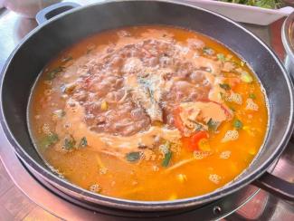 酸笋火锅结合了广西酸笋和贵州酸汤的特色,汤底发酵的酸味并不臭,反而鲜美无比。酸笋薄脆可口,搭配各种新鲜菜品,让人胃口大开。