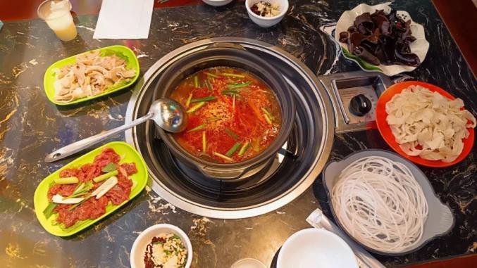 毛肚火锅中的食材新鲜美味,尤其是鲜甜的牛羊毛肚,搭配新鲜的时蔬、豆腐等配料,煮熟后散发出香气扑鼻的鲜甜味道。