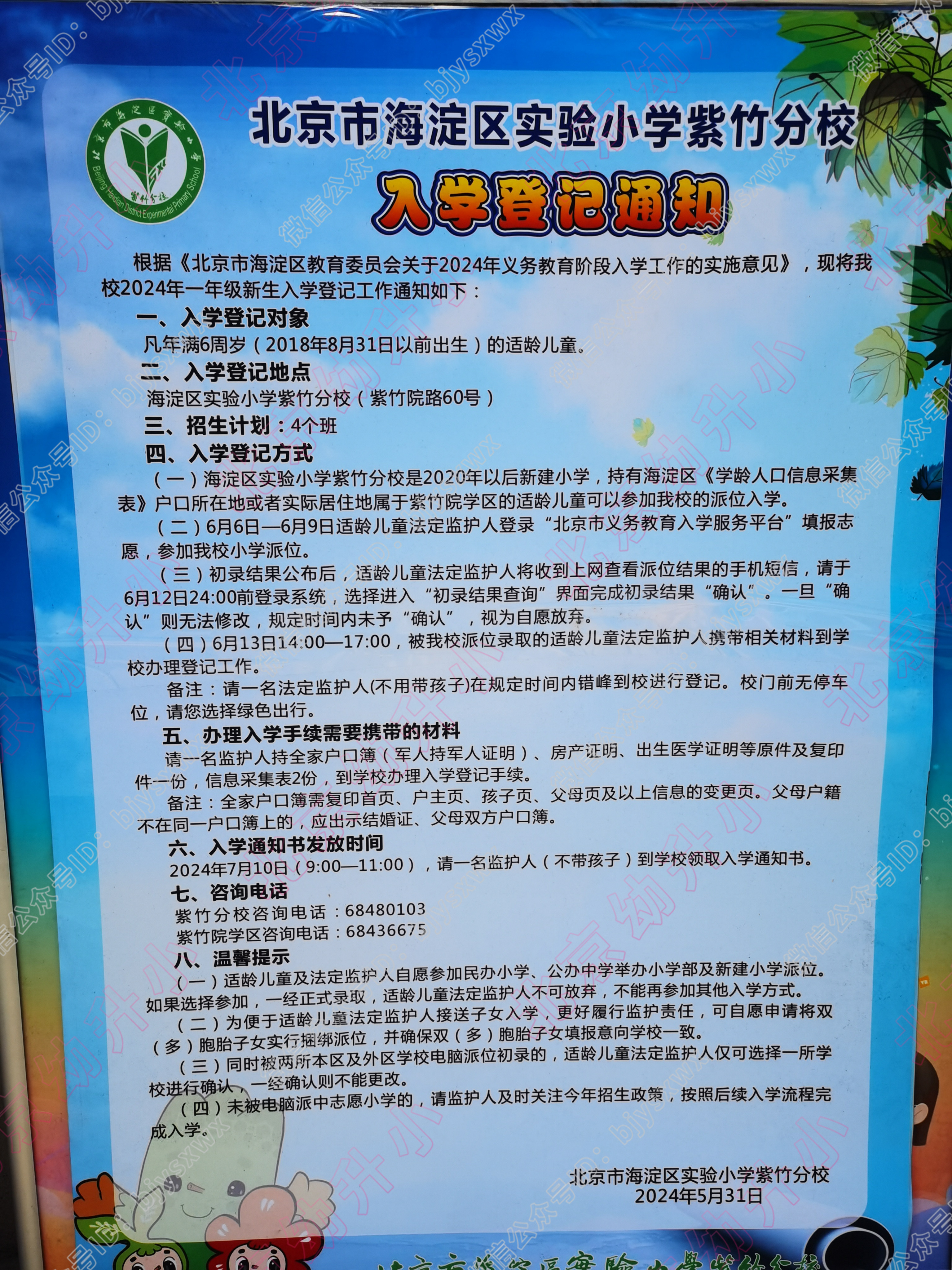 2024年海淀区各小学招生简章要求各异(详细点击查看→2024年小学招生简章汇总),您知晓海淀区实验小学紫竹分校招生范围对应哪些小区?什么时候到海淀区实验小学紫竹分校报名?准备哪些入学材料?北京幼升小网团队为您分享相关内容。