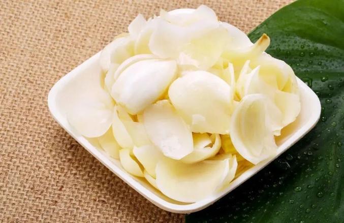 从地里挖出的新鲜百合,擦去泥土,剪切掉那些已干枯发黄的鳞片尖,通体白洁晶莹,如玉般圆润柔和。逐层地轻轻掰开合抱在一起的鳞片,会发现每一瓣都有一定的厚度,由外至内,每一瓣的弧度越来越明显,质地也越来越娇嫩洁白。