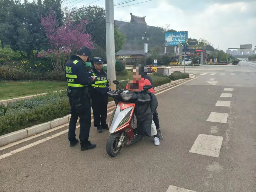 整治违法行为:查处副驾驶不系安全带6起,劝导非机动佩戴头盔5人次,劝离10辆大货车。