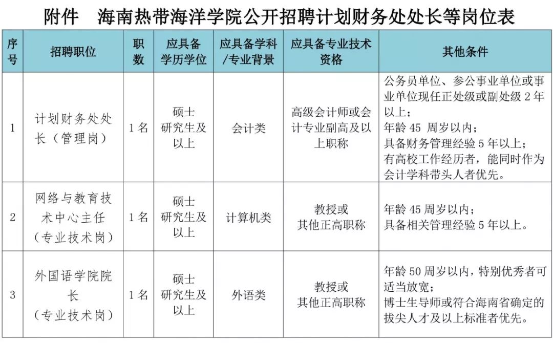 ★公告全文可点击【海南热带海洋学院 2019年公开招聘计划财务处处长、网络与教育技术中心主任、外国语学院院长岗位公告】查看