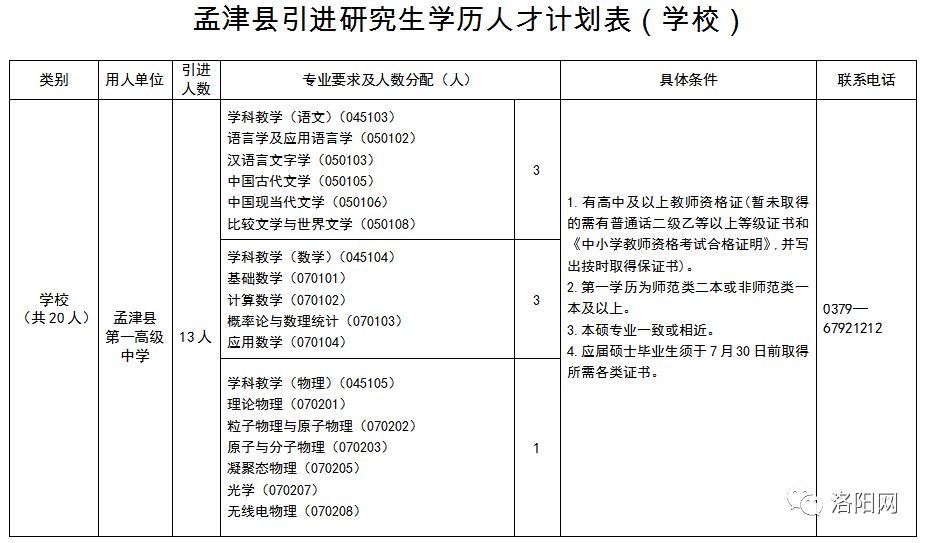 本次引进研究生学历人才55名,其中县直部门事业单位35名,学校20名(孟津县一高13名、孟津县二高7名),具体引进计划和数量详见《孟津县引进研究生学历人才计划表》