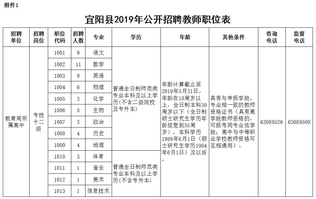 4、拟招聘职位要求的资格条件详见《宜阳县2019年公开招聘教师职位表》