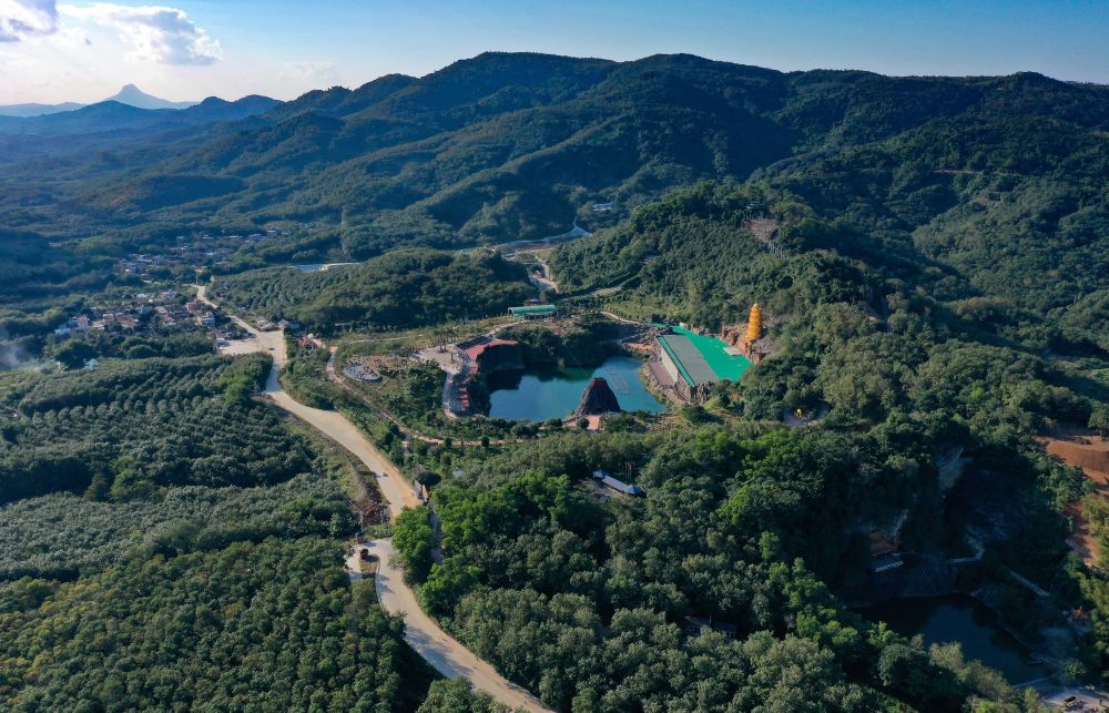 2020年12月29日拍摄的位于海南省儋州市的莲花山景区,这里曾是一座废弃矿山(无人机照片)。新华社记者 郭程 摄