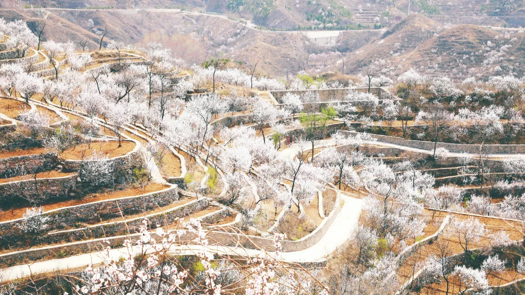 雁翅古村里绝美的杏花梯田