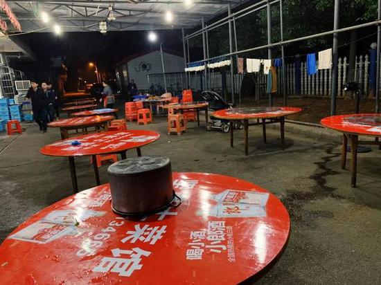 为了扩大环境,店家把店后的空坪全部利用起来,雨棚架起,摆得十几张圆桌,不知道的还以为是乡下办流水席。