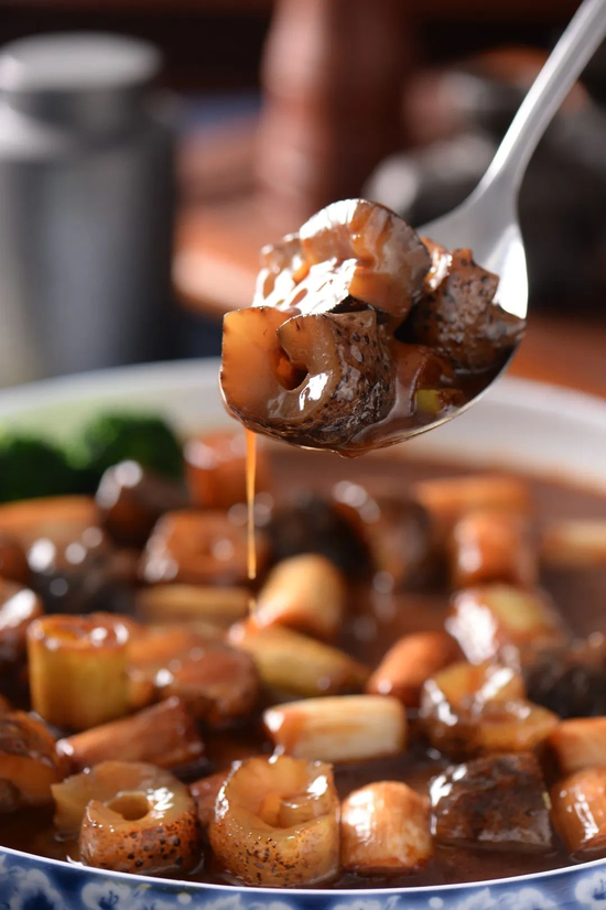 菜品也完美还原顺德味道,一口叉烧就能坐实“正宗”二字,每一块叉烧都是比例完美均衡的半肥瘦,吃起来香而不腻,一口就能把人醉倒。