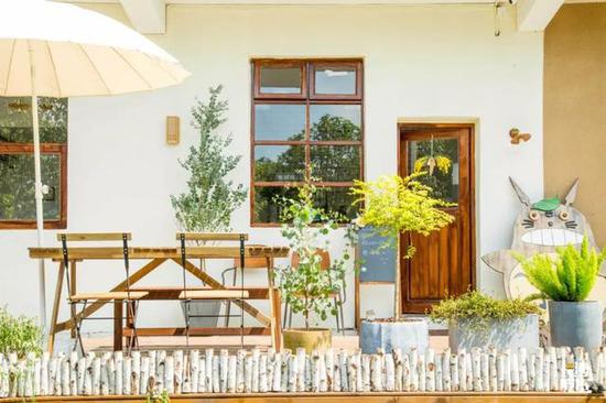 你很难想象在一个公园里,会有这样一个地方的存在,一座大大的玻璃房,几座白屋子,外面还有一片绿茵草地包围着餐厅。