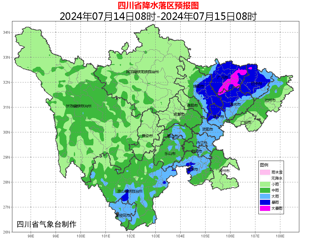 14-17日,仍是四川盆地一带强降雨主时段,强降雨落区几乎没挪窝,尤其降水还有一定极端性,盆地西部和北部局地有特大暴雨,需高度警惕持续强降雨叠加效应可能引发的次生灾害。