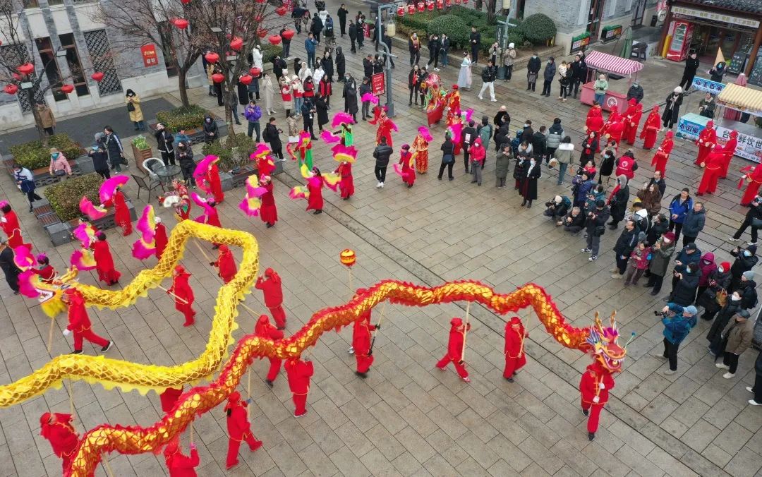 翰墨飘香送“福”字,民间曲艺氛围浓,即墨古城里,书法、腰鼓、舞龙、秧歌、踩街、套圈等一系列精彩纷呈的文化体验活动,引来游客纷纷打卡,让广大群众感受热腾腾的烟火气和浓浓的节日氛围。