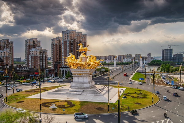 牡丹江市江南转盘道奔腾雕塑。牡丹江市委新闻中心供图