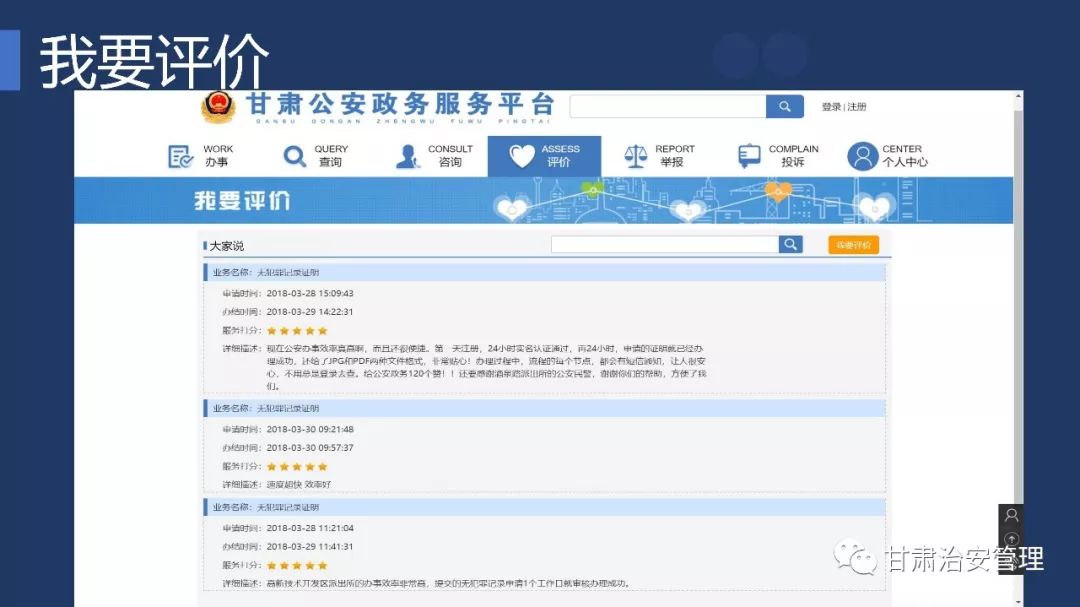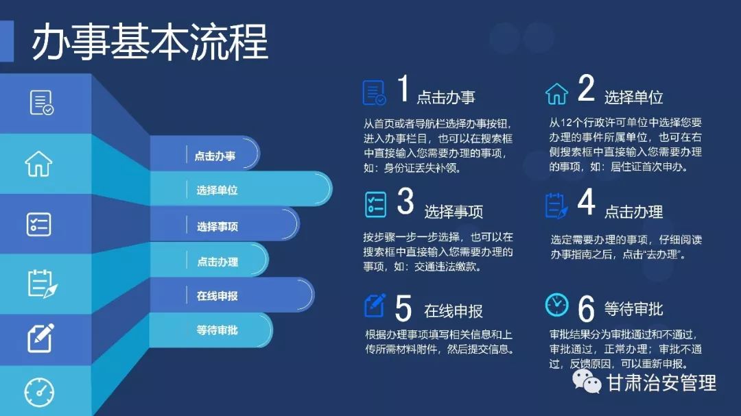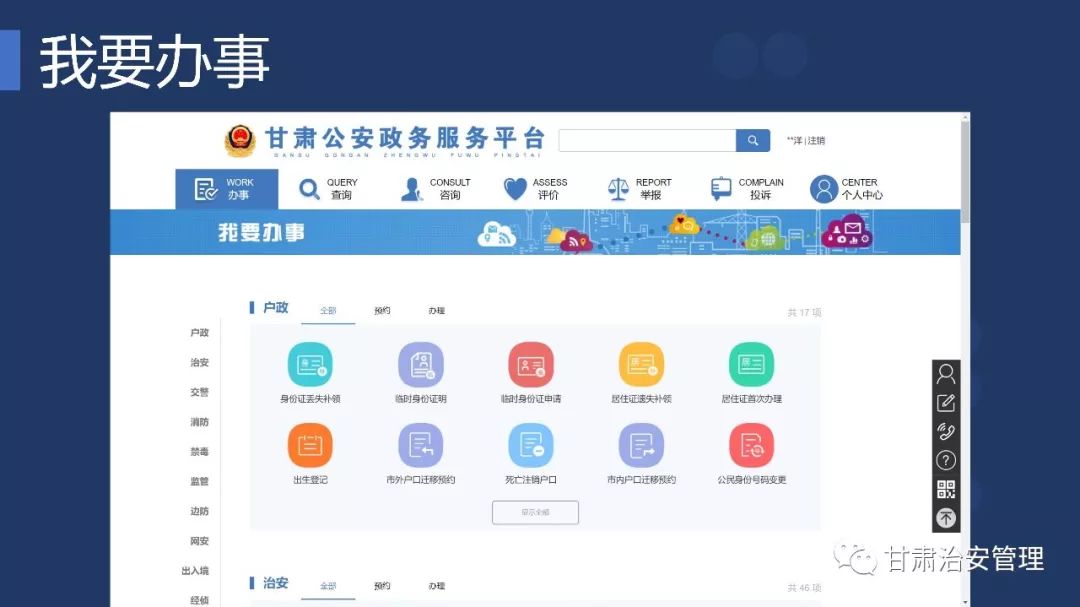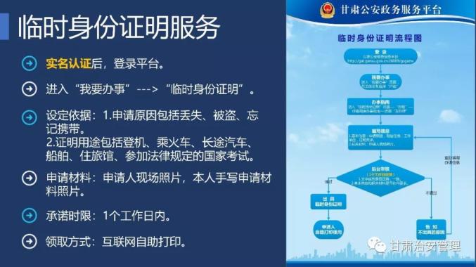 二、网上办理业务。办理身份证丢失补领、临时身份证明、居住证申领、无犯罪记录证明等业务时,也可直接登录“甘肃公安政务服务平台”,网上预约办理并查询审批进度。