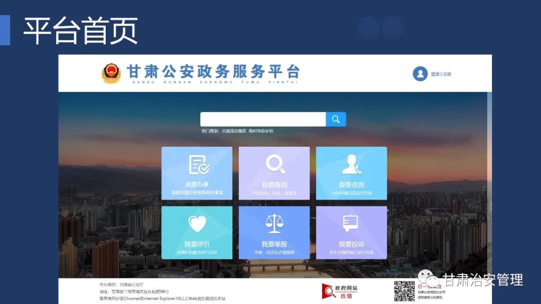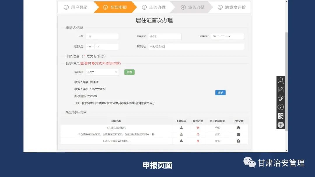 二、网上办理业务。办理身份证丢失补领、临时身份证明、居住证申领、无犯罪记录证明等业务时,也可直接登录“甘肃公安政务服务平台”,网上预约办理并查询审批进度。