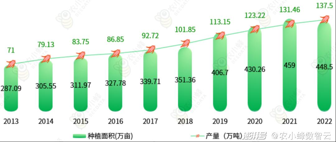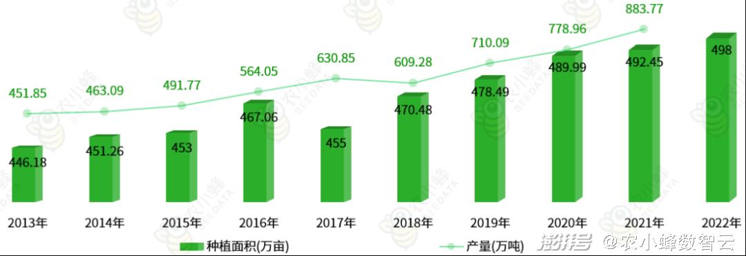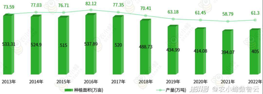 2.5.1.面积、产量分别在400万亩、60万吨左右波动