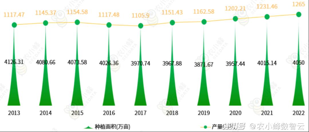 2.1.1.种植面积回升至4000万亩以上,产量超1200万吨