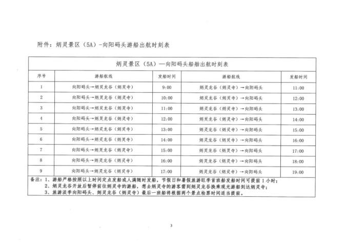 附件:炳灵景区(5A)-向阳码头游船出航时刻表