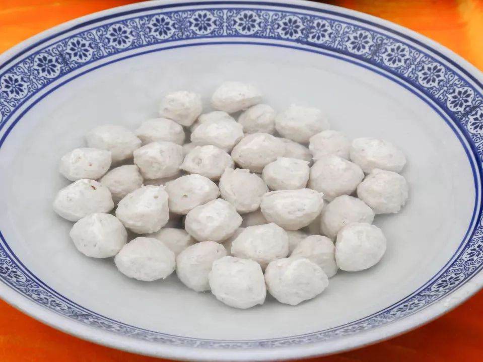 手工鲩丸都是家制自用,是作为当地客家人庆贺传统佳节和婚嫁寿诞时,宴请亲朋好友的一道传统大菜。打鱼丸主要选料要好,鱼要选草鲩,而且要生长在水质好的鱼,打出的鱼丸才靓。