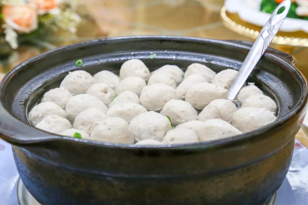 开锅肉丸是客家名菜之一,以其独特的风味和口感深受大家欢迎。丙村开锅肉丸味道纯正,肉香味浓郁,保持猪肉的原香原味,既有韧性又很爽脆,既有嚼头又不打渣,软嫩爽滑,别有风味。