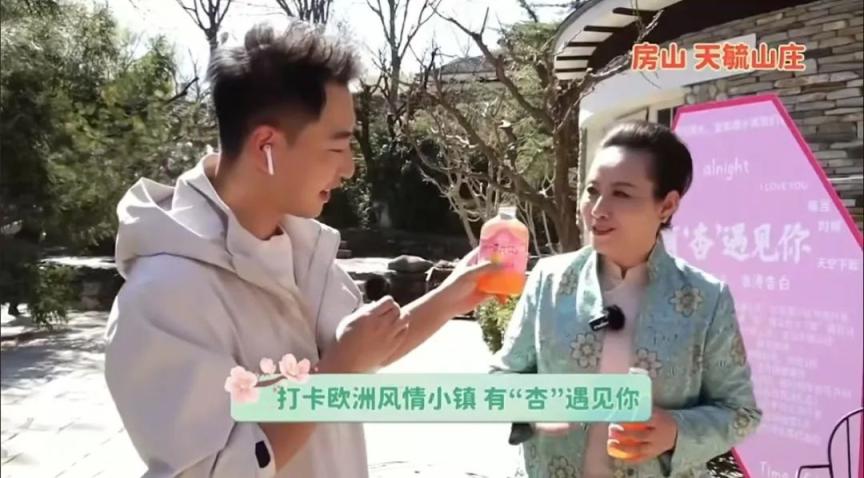 直播以 "人在画中游" 为创意主线,主持人与房山文旅推荐官组成 "追春团",沿天毓山庄内蜿蜒的木栈道漫步,介绍房山春季赏花资源及文旅活动。